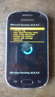 Foto do Galaxy Fame Lite com Cwm Recovery.
