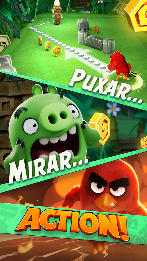 Leve Angry Birds Action para o Filme dos Angry Birds para desbloquear o conteúdo especial. Como funciona? Basta aguardar até o fim do Filme dos Angry Birds, abrir Angry Birds Action na hora dos créditos e você poderá desbloquear uma área totalmente nova para explorar no jogo, assim como um clip especial do filme!*